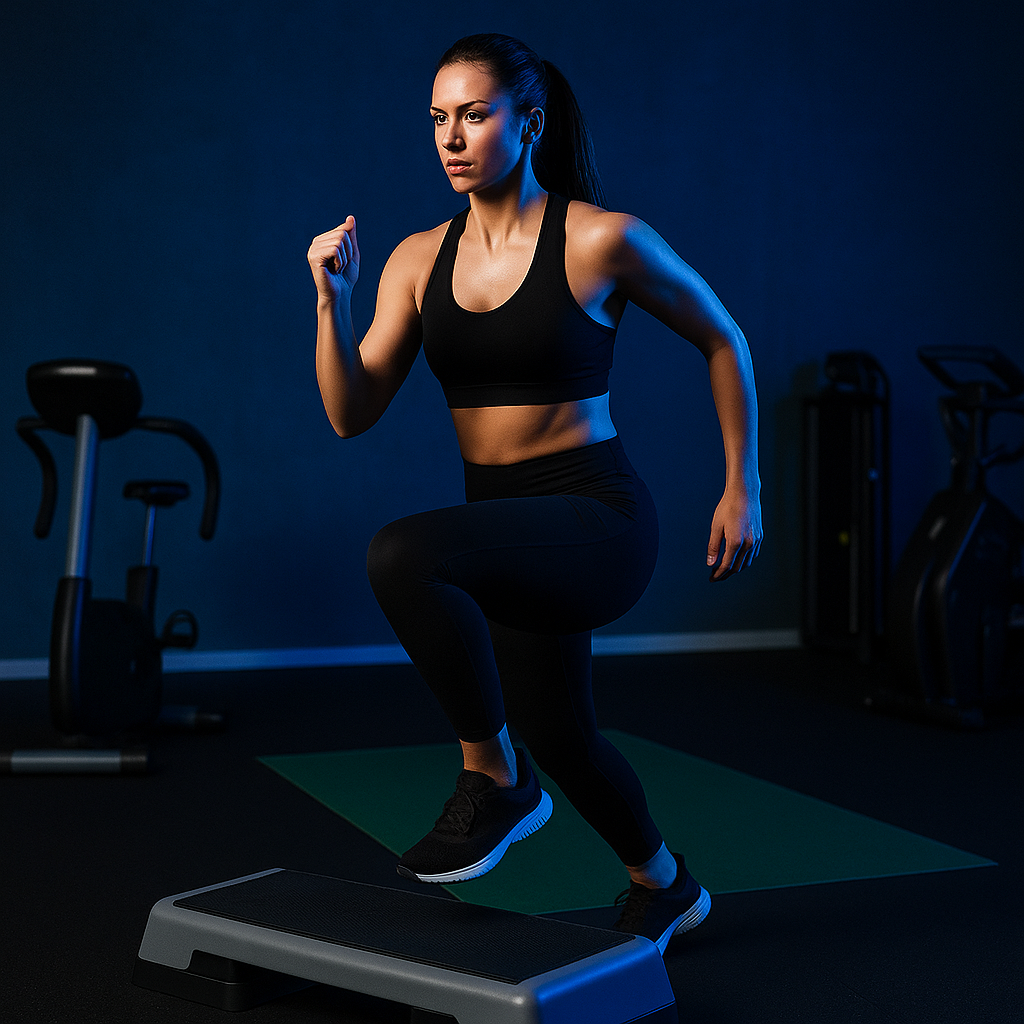 Cours chorégraphié autour d’un step (marche) : enchaînements progressifs pour transpirer, travailler le cardio et la coordination, sur une playlist motivante.